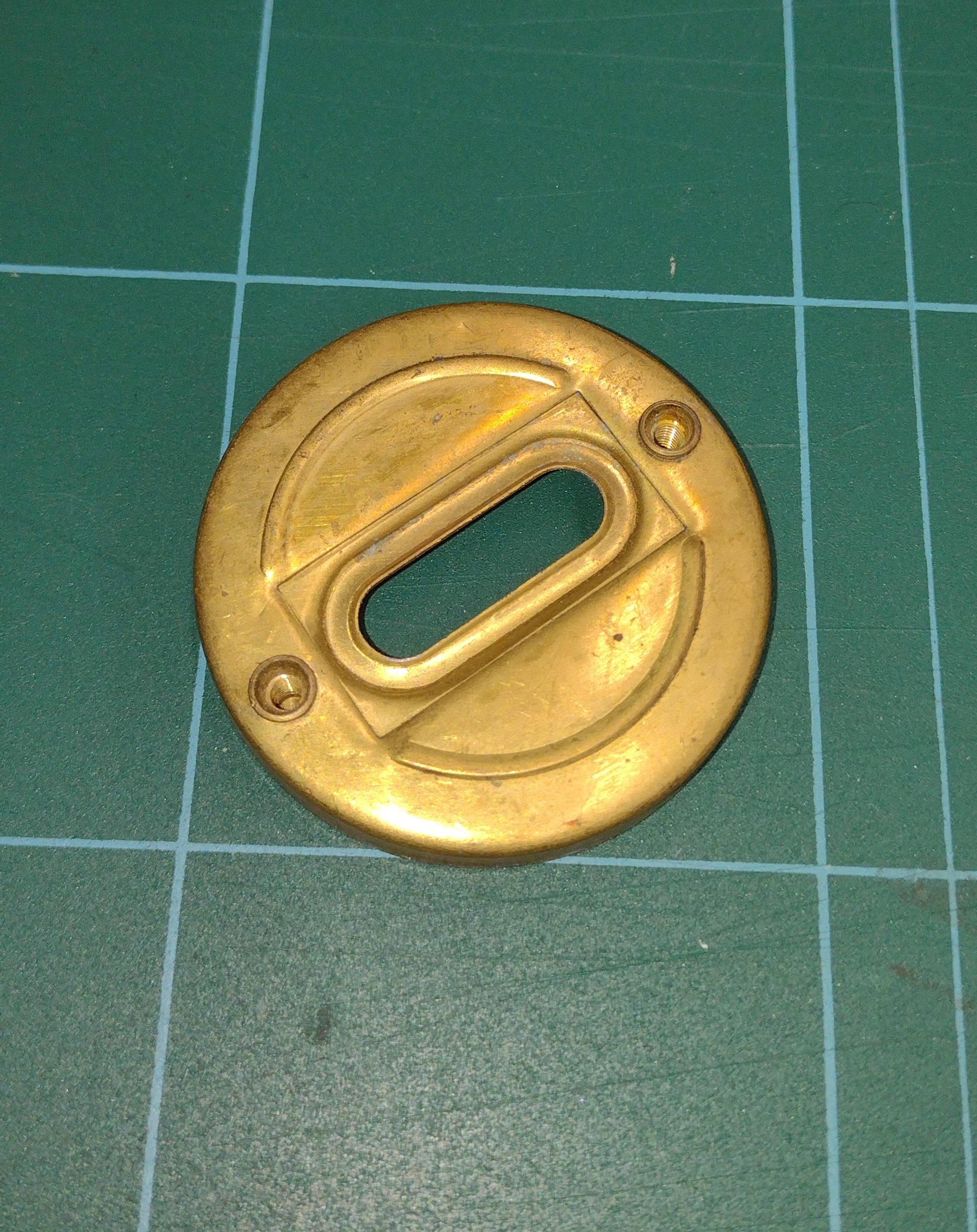 1.75" Pressed Brass End Cap complete with 2 Brass Threaded Inserts and Slot for Sight Glass.